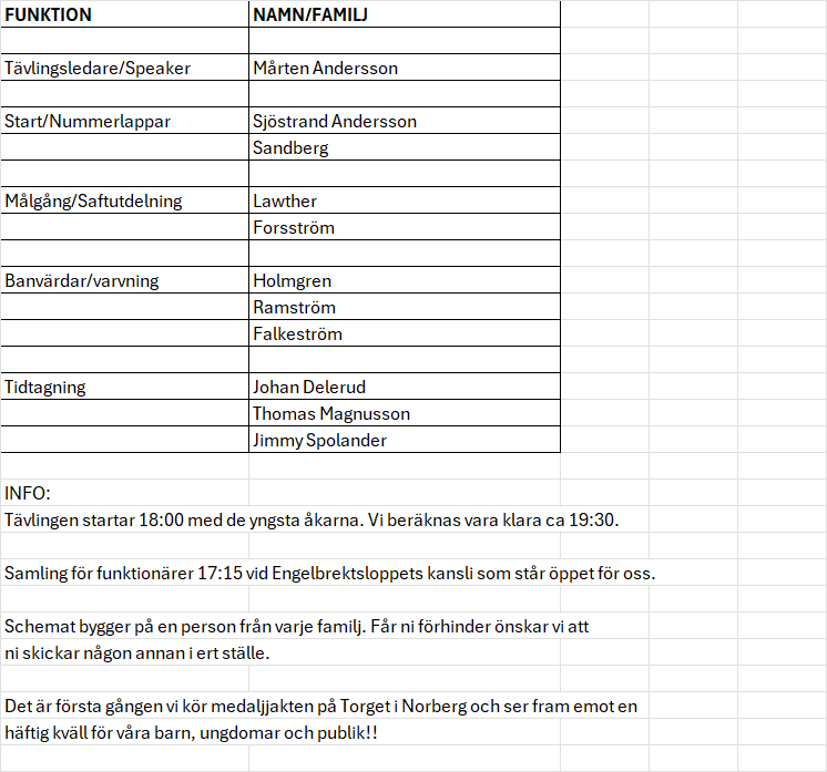 Här kommer bemanningsschema och information inför lilla Engelbrektsloppet lördag 31/1.